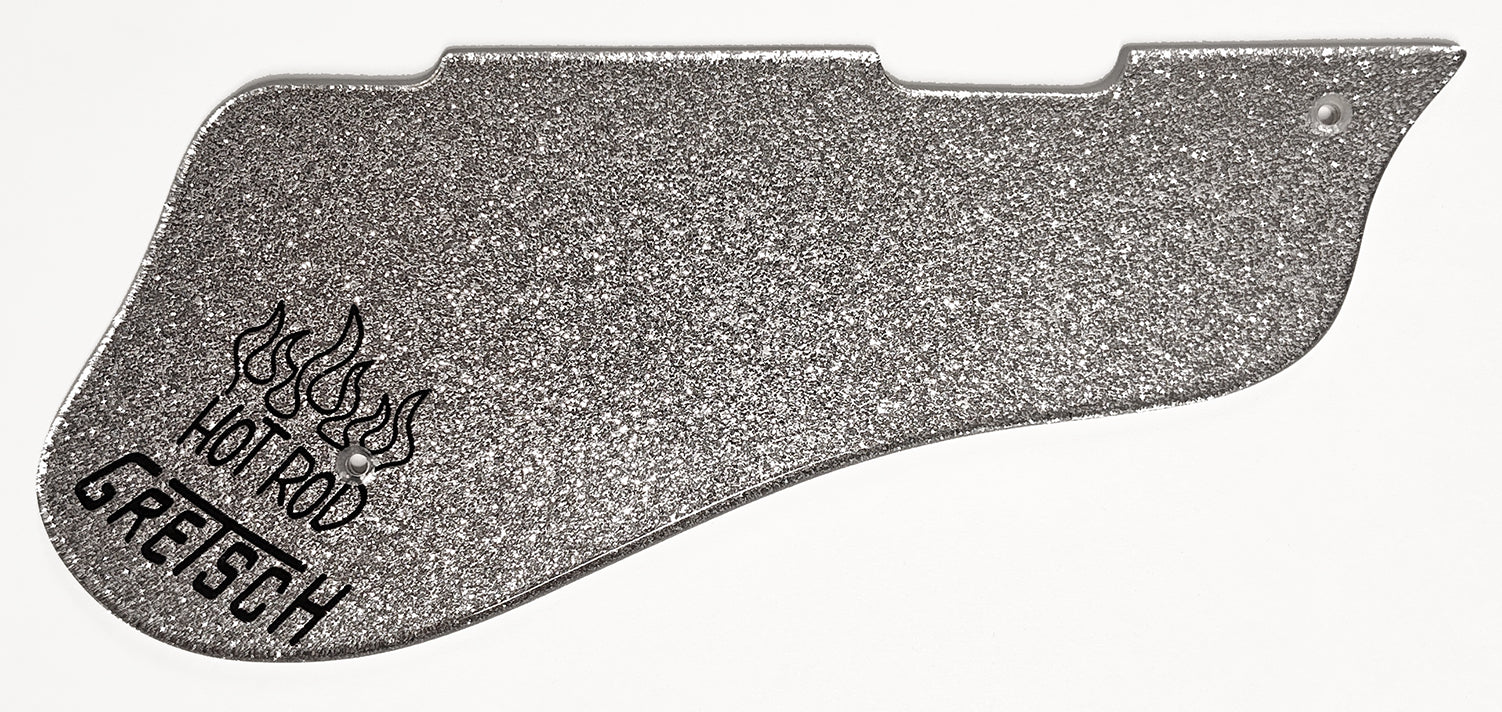 Silver Sparkle with Black Logo & Hot Rod Flames 3/16 inch (4mm) thick Acrylic pickguard with White Round Over bevel. Fits 6120T-HR